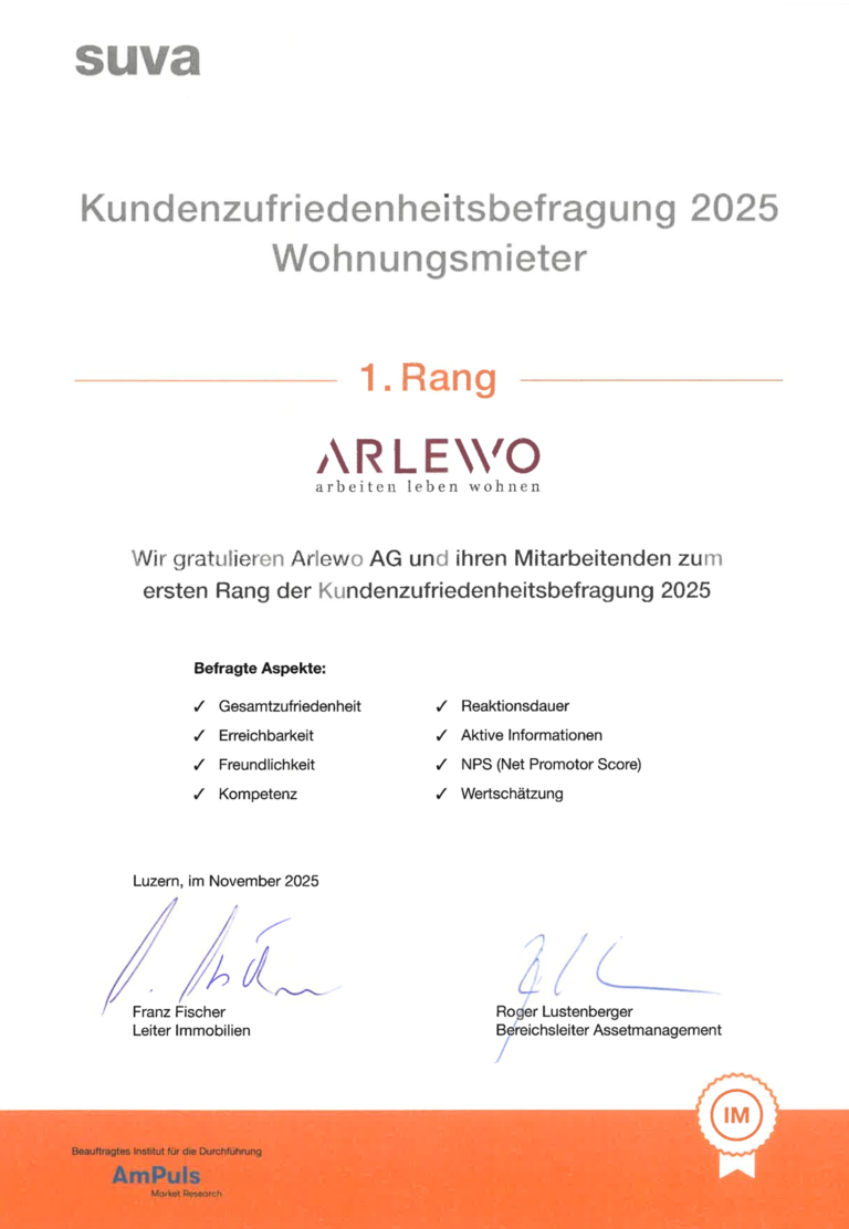 Wir sind ausgesprochen stolz auf diese Wertschätzung unserer Mieterschaft. Doch unser herzlicher Dank gilt vor allem unseren Mitarbeitenden für den konstanten Einsatz, die Professionalität und das grosse Verantwortungsbewusstsein. Das Ergebnis bestätigt eindrücklich, dass der eingeschlagene Weg aus fachlicher Kompetenz, persönlicher Betreuung und kontinuierlicher Weiterentwicklung nachhaltig überzeugt.