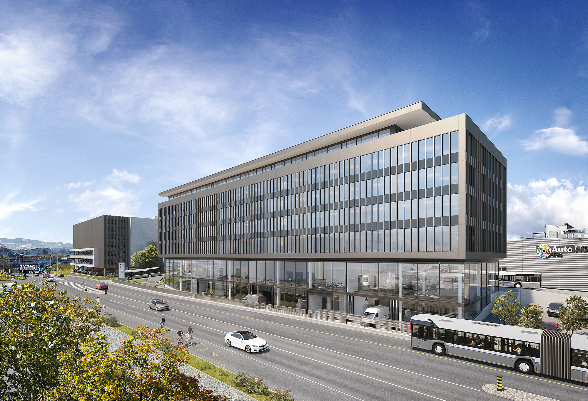 Attraktiver Neubau «A2 Gewerbepark» mit ca. 10'000 m² Büro- Ausstellungs- und Gewerbeflächen direkt an der Autobahn A2.